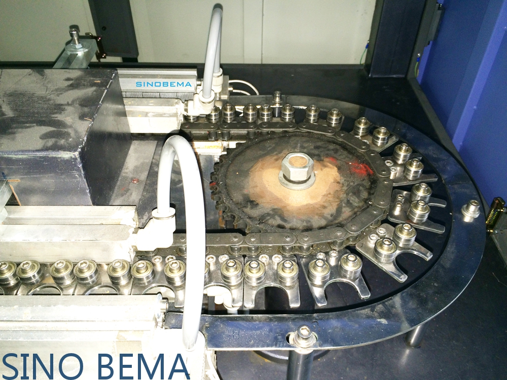 Loading wheels, which is used for press the axis and press it into the preforms neck, and the preforms will be loaded on the clips or holder tightly.
